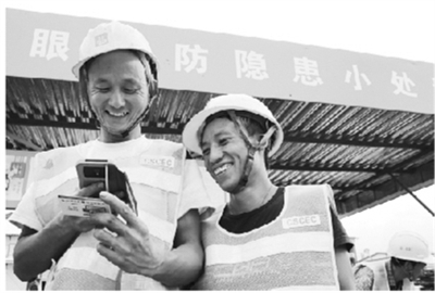 安徽送变电工程公司的职工在工作之余聚集在流动书箱旁读书加油充电