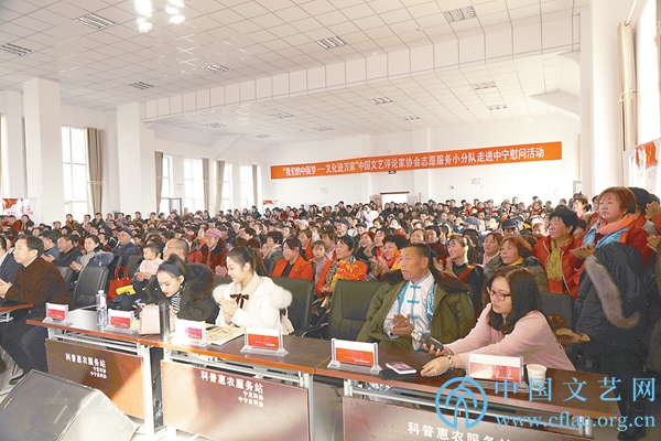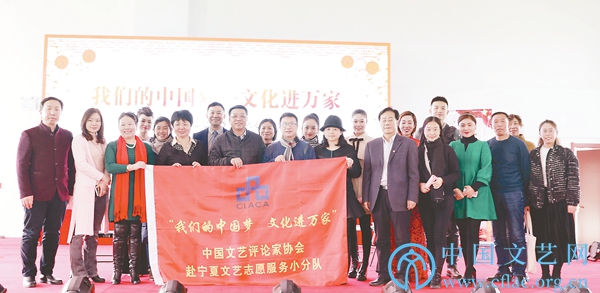 按照中宣部、中国文联统一部署,为全面贯彻落实党的十九大精神,深入学习贯彻习近平总书记给乌兰牧骑队员回信的重要指示精神,落实《中共中央宣传部等关于2018年元旦春节期间广泛开展“我们的中国梦”——文化进万家活动的通知》要求,2018年1月下旬、2月初,中国文艺评论家协会志愿服务小分队分赴新疆昌吉、阜康,内蒙古锡林郭勒盟和宁夏吴忠、中宁开展“我们的中国梦——文化进万家”慰问演出活动,为地方群众送去了丰富多彩的精神文化食粮。