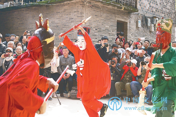 南丰大傩始于汉初,两千多年来傩风不绝,傩班遍布,是中国传统傩文化的典型代表,一般在春节期间进行,由起傩、跳傩、驱傩、圆傩等几个基本程序构成,有八百余年历史的南丰县石邮村傩文化成为本次采风的重点考察对象。