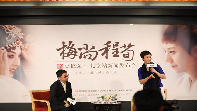2018年08月27日下午两点半,《梅尚程荀·史依弘》北京站新闻发布会在国家大剧院举行,主演史依弘亮相现场,与主持人共同畅谈此次演出。