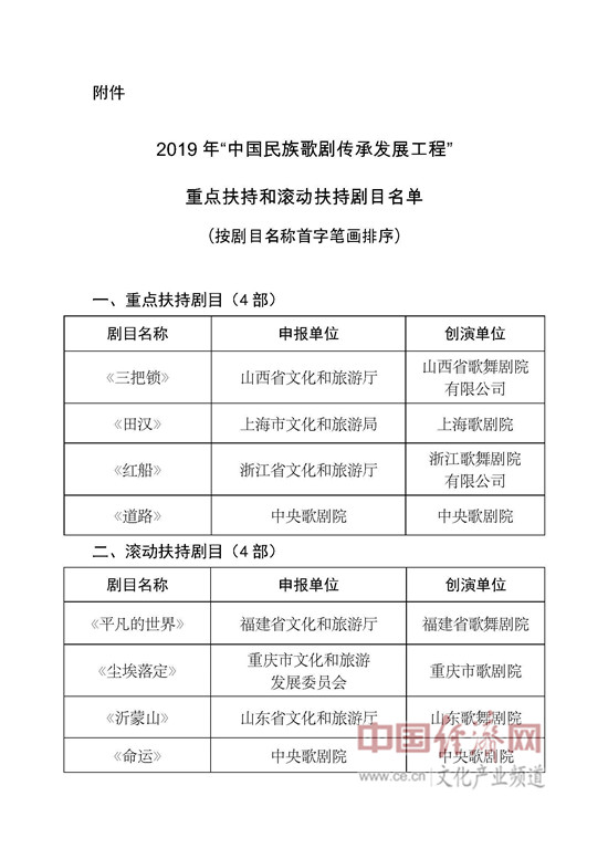 《田汉》等八剧目获2019年“中国民族歌剧传承发展工程”扶持 来源:经济日报-中国经济网 作者: 时间:2019-08-14 【字体:小 大】 经济日报-中国经济网北京8月13日讯 近日,文化和旅游部办公厅公布了2019年“中国民族歌剧传承发展工程”重点扶持和滚动扶持剧目名单,《田汉》、《平凡的世界》等8部剧目入选。文化和旅游部从2018年重点扶持剧目中遴选出的了《平凡的世界》、《尘埃落定》、《沂蒙山》、《命运》4部作品进行滚动扶持。以下为相关扶持剧目名单: 智能标签: 中国民族歌剧 滚动扶持剧目 相关内容 分享到: 【打印正文】