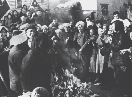 你见过土地改革完成后,农民销毁旧地契的场景吗?