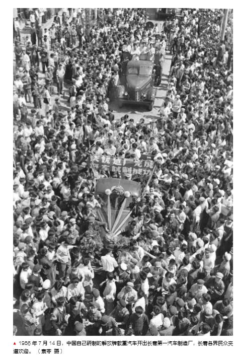 你见过1956年第一辆中国自己研制的解放牌载重汽车试车成功时欢欣鼓舞的人群吗?
