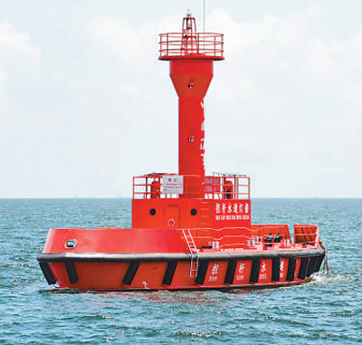 采用北斗航标遥测遥控装置的一艘大型灯船投放在珠江口担杆水道。新华社记者 田建川摄