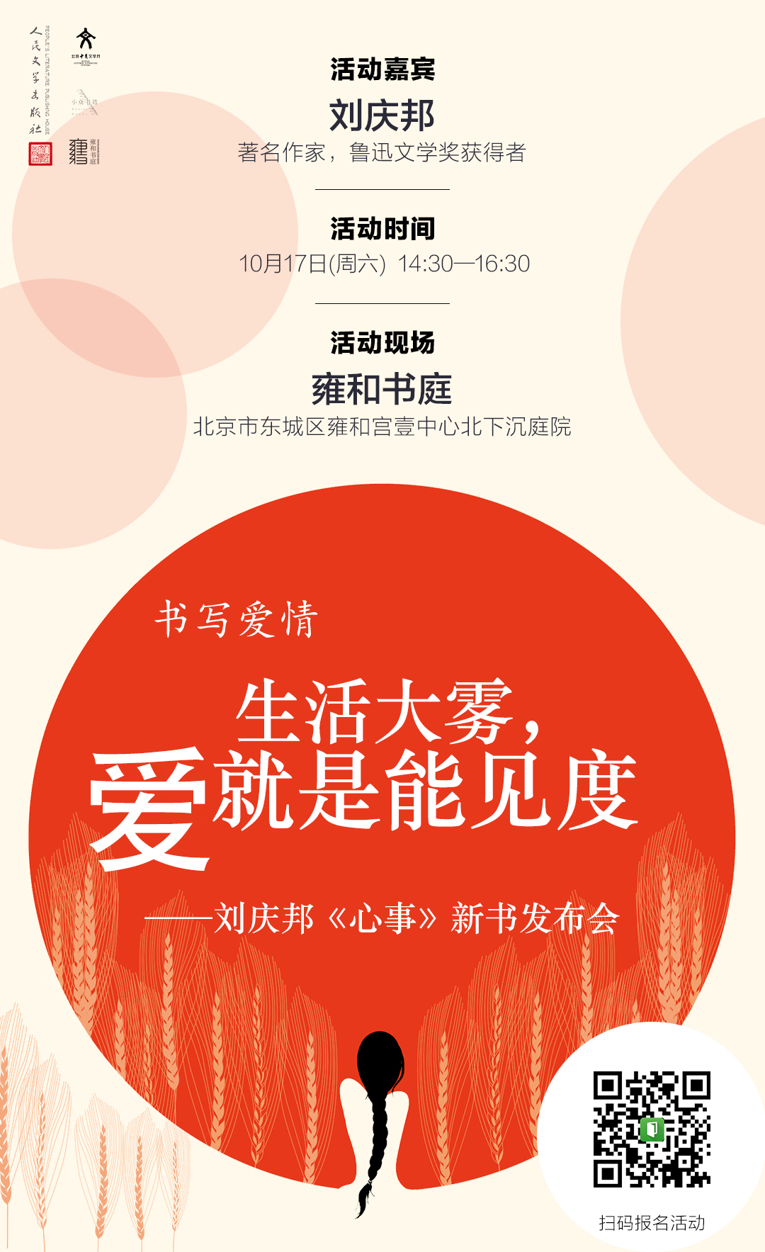 本次活动为刘庆邦《心事》的首场新书发布会,特别邀请刘庆邦做客北京雍和书庭,在2020年这个特殊的年份,共同探讨爱在生活中的重要价值,探讨短篇小说写作的要义。
