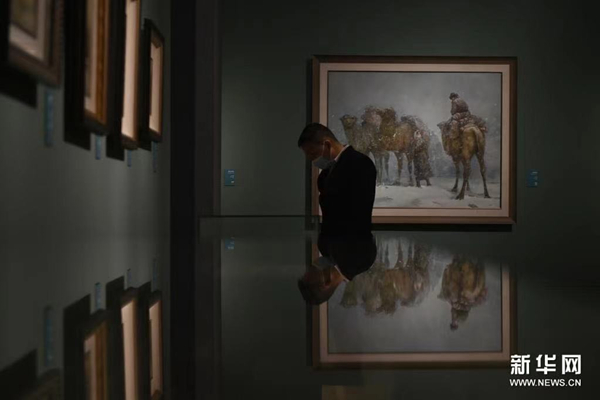 4月7日,观众在中国美术馆的“风华凝粹——鲍加艺术展”上参观。新华社记者 鲁鹏 摄