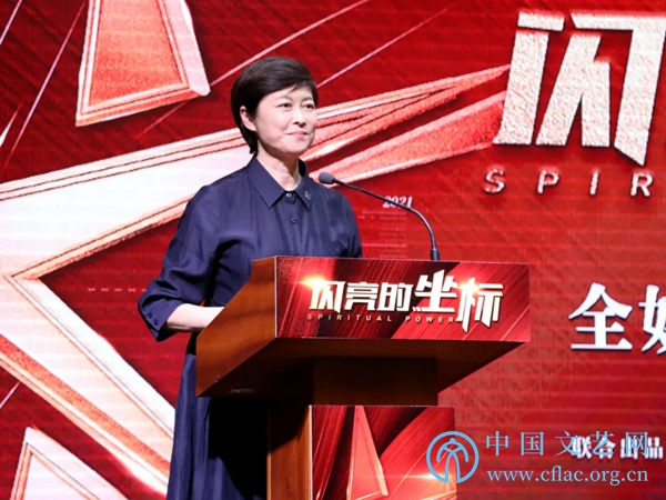 5月10日,《闪亮的坐标》全媒体上线播出新闻发布会在京举行。图为中国视协分党组成员、副秘书长、一级巡视员范宗钗在发布会上致辞。