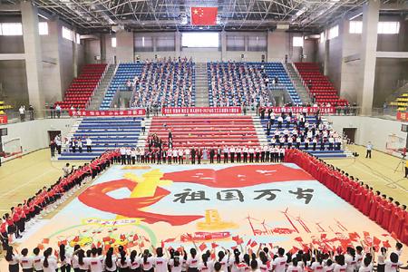 为庆祝中国共产党百年华诞,回顾党的光辉历程,讴歌党的丰功伟绩,激发广大群众的爱国情怀,深入扎实开展新时代文明实践活动,在第八个中国文艺志愿者服务日到来之际,“学党史、传精神、跟党走”到人民中去·2021山东文艺志愿服务主题活动“永远跟党走·祖国万岁”大型沙盐画广场演绎大赏在山东省滨州市沾化区体育馆举办。