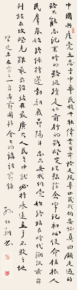 ——在“伟业:庆祝中国共产党成立100周年书法大展”开幕式上的讲话