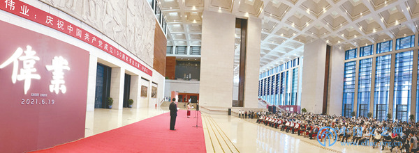 6月19日,“伟业:庆祝中国共产党成立100周年书法大展”在北京开幕,图为开幕式现场
