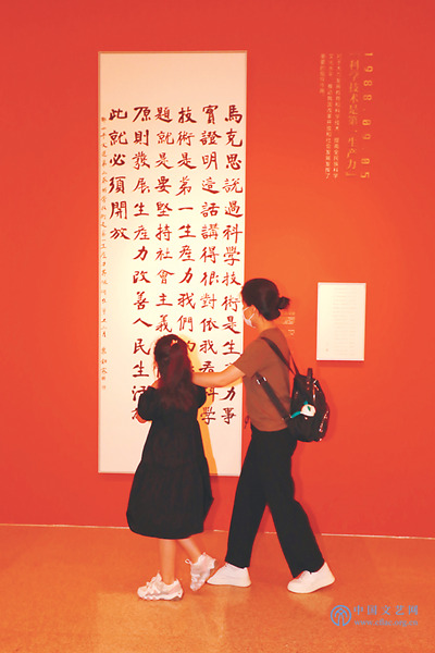 习近平总书记强调:“一切伟大成就都是接续奋斗的结果,一切伟大事业都需要在继往开来中推进。”衷心希望广大书法工作者以这次展览为契机,进一步深入学习贯彻习近平新时代中国特色社会主义思想,特别是习近平总书记关于文艺工作的重要论述,胸怀两个大局,心系国之大者,增强文化自信,自觉承担起举旗帜、聚民心、育新人、兴文化、展形象的使命任务,真正做到胸中有大义、心里有人民、肩头有责任、笔下有乾坤。衷心希望广大书法工作者认真参与“四史”特别是党史学习教育,固本培元、砥砺品格,真正做到学史明理、学史增信、学史崇德、学史力行,用心用情用功传承红色文化基因、书写伟大时代华章,为建设社会主义文化强国、全面建设社会主义现代化国家贡献力量!