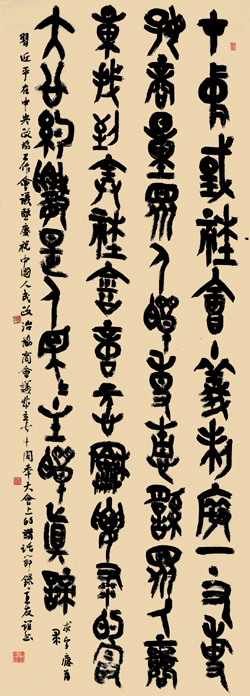 今年是中国共产党成立100周年,也是“十四五”开局、新征程开启之年,必将在中国历史上留下浓墨重彩的一页。今天,我们在这里举办这个展览,是书法界向党的百年华诞献上的一份厚礼,也是书法界用党的奋斗历程和伟大成就鼓舞斗志,用党的光荣传统和优良作风坚定信念,用党的文化创造和历史经验启迪才智,用书法艺术投身社会主义文化强国建设的一份决心书。参加本次展览的作品,既有对重大历史事件的宏观呈现,也有对革命先辈事迹的微观挖掘,还有当代书法艺术对珍贵革命历史文献的跨时空致敬。参加这次展览的数百位书法家来自祖国各地、各行各业,他们满怀对党的无限热爱,沉潜历史、感悟初心、凝炼文墨,把壮丽辉煌的百年党史,化作笔端的浓情厚意,创作出数百件精品力作,以展示他们培根铸魂、守正出新的艺术追求和为时代画像、为时代立传、为时代明德的文化担当!