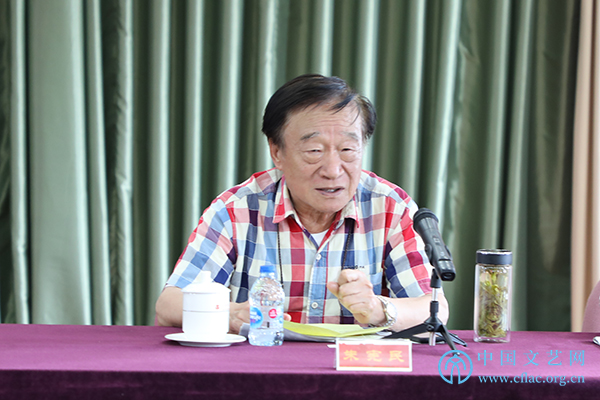 7月2日,摄影界学习习近平在庆祝中国共产党成立100周年大会上的重要讲话座谈会在京召开。图为中国摄协顾问朱宪民发言。中国文艺网 贾岩 摄