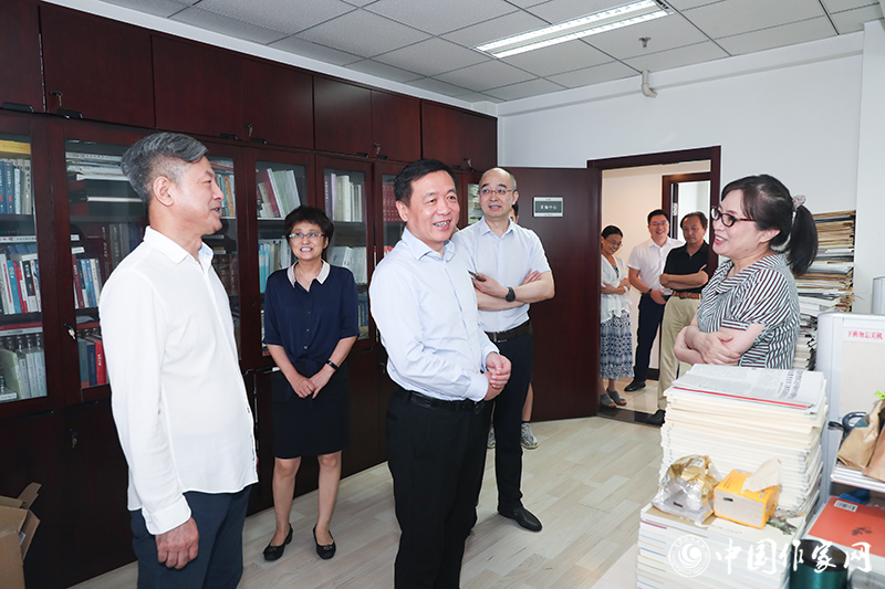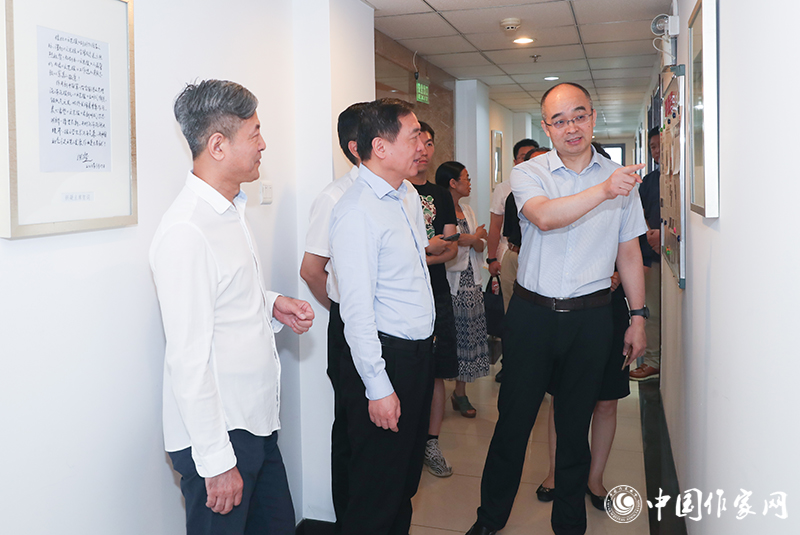 中国作协党组成员、副主席、中国现代文学馆馆长李敬泽,中国作协党组成员、书记处书记、中国作家出版集团管委会主任吴义勤参加调研。