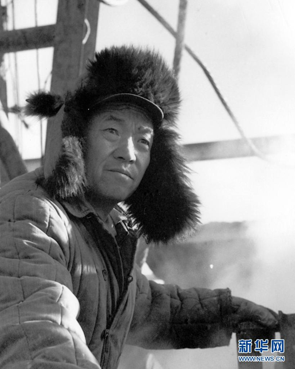 王进喜在工作中(资料照片)。新华社发