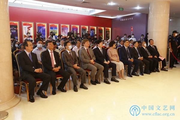 7月20日,“中国杂技与外交”图片展览在中国文艺家之家展览馆开幕。图为展览开幕式现场。