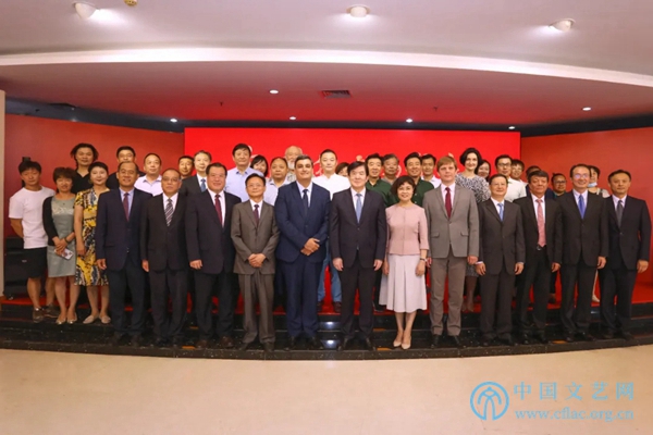 7月20日,“中国杂技与外交”图片展览在中国文艺家之家展览馆开幕。图为领导嘉宾合影。