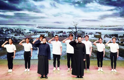 电视剧《觉醒年代》主创团队走进北京大学,剧中主要演员与北大学生同台演出。新华社发