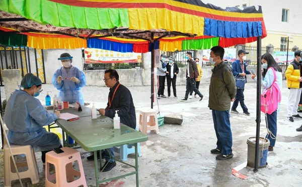 采风团成员在玉树州进行核酸检测现场