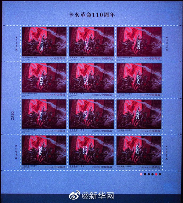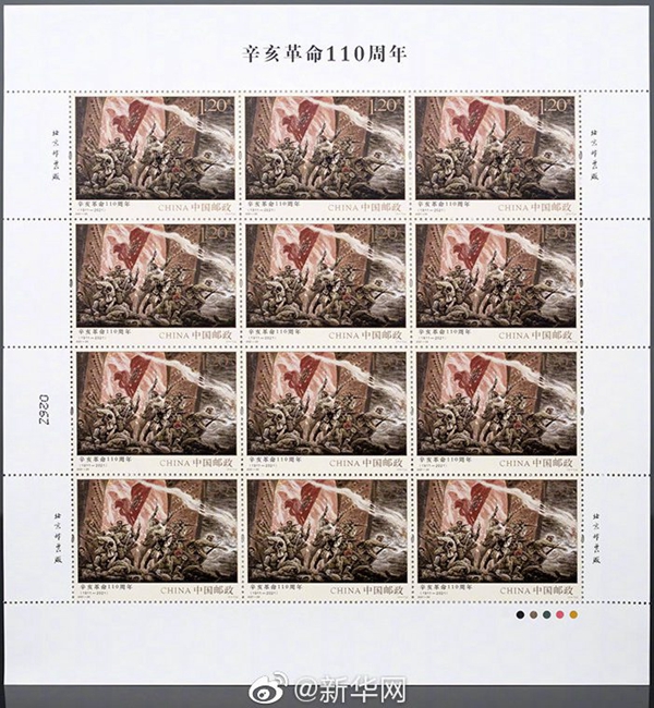 中国邮政10日发行《辛亥革命110周年》纪念邮票一套1枚,全套邮票面值1.20元。邮票计划发行数量为670万套。