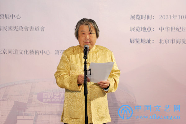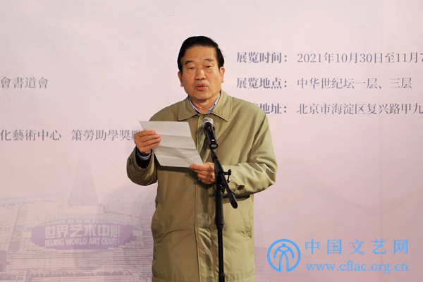 11月2日,第三届中韩议员公务员书法展在京开幕。图为中国城乡发展国际交流协会监事冯卓志在开幕式上致辞。 中国文艺网 韩雪竹 摄
