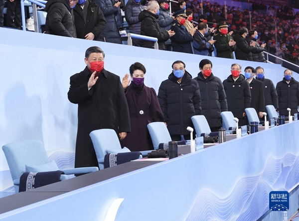 3月13日晚,北京2022年冬残奥会闭幕式在国家体育场隆重举行。这是国家主席习近平在主席台上向大家挥手致意。新华社记者 谢环驰 摄