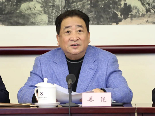 3月27日,中国文联文艺工作者职业道德建设委员会2022年全体会议在京召开。图为中国文联文艺工作者职业道德建设委员会主任姜昆主持会议。