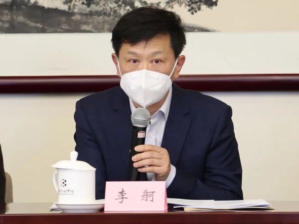 3月27日,中国文联文艺工作者职业道德建设委员会2022年全体会议在京召开。图为李舸发言。