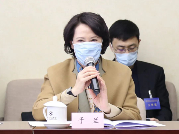 3月27日,中国文联文艺工作者职业道德建设委员会2022年全体会议在京召开。图为于兰发言。