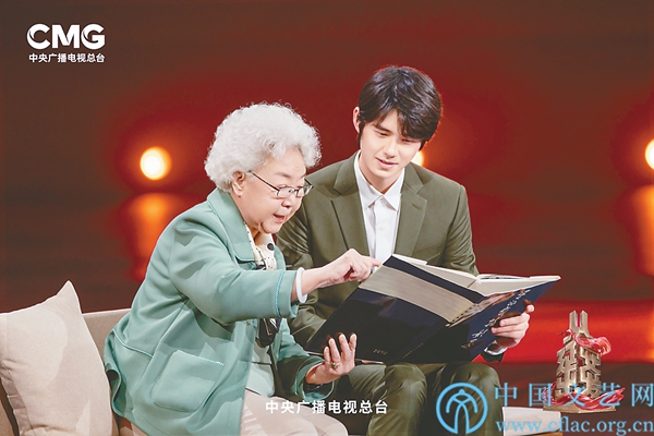 大型文化节目《从延安出发》中,九十三岁前辈艺术家田华为青年演员刘昊然讲述延安往事。