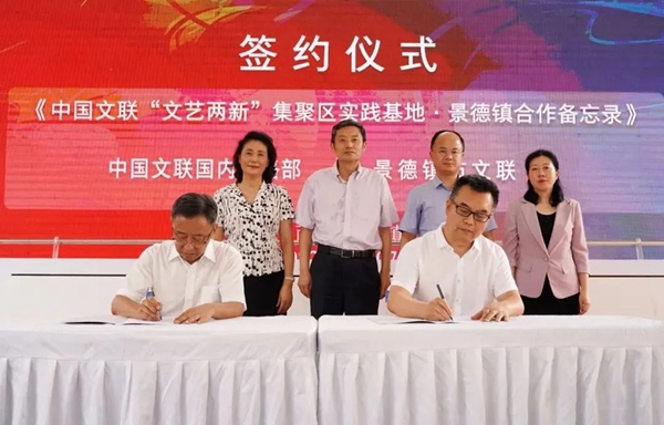会上,中国文联国内联络部和景德镇市文联签订了《中国文联“文艺两新”集聚区实践基地•景德镇合作备忘录》。
