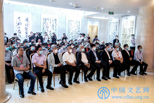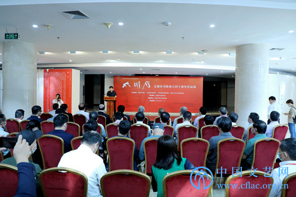8月30日,“太湖风——无锡市书协成立四十周年作品展”在北京中国文艺家之家展览馆开幕。图为开幕式现场。 中国文艺网 高森 摄