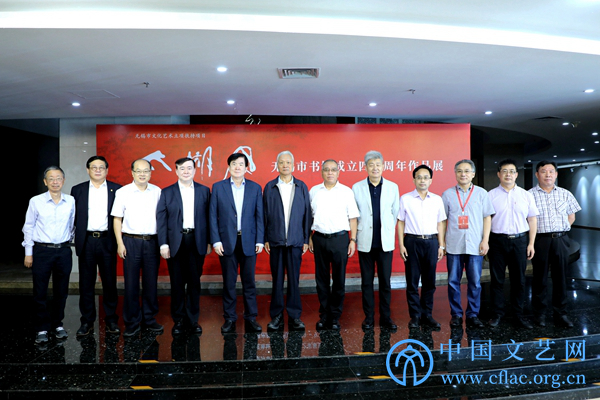 8月30日,“太湖风——无锡市书协成立四十周年作品展”在北京中国文艺家之家展览馆开幕。图为领导嘉宾参观展览。 中国文艺网 高森 摄