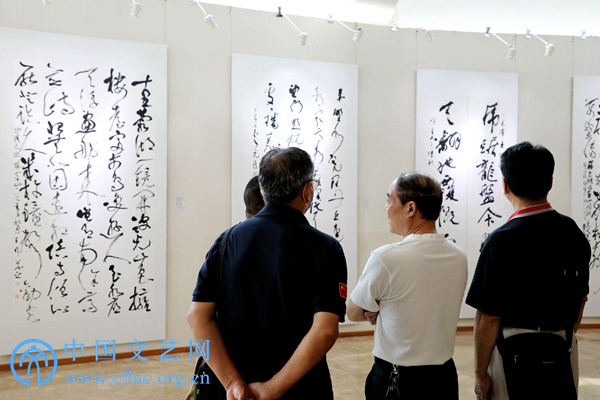 8月30日,“太湖风——无锡市书协成立四十周年作品展”在北京中国文艺家之家展览馆开幕。图为展览现场。 中国文艺网 高森 摄