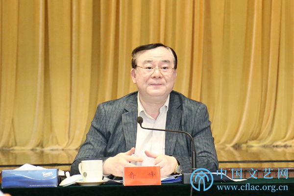 8月29日,中国文联党组理论学习中心组召开《习近平谈治国理政》第四卷专题学习研讨会。图为中国文联党组成员、副主席俞峰出席会议并作交流发言。中国文艺网 李想 摄