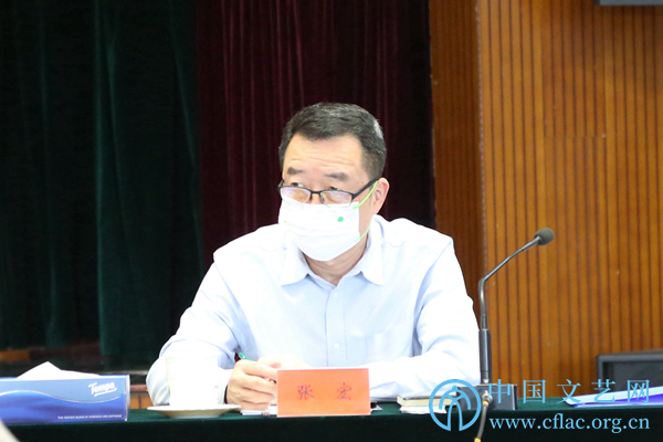 8月29日,中国文联党组理论学习中心组召开《习近平谈治国理政》第四卷专题学习研讨会。图为中国文联党组成员、书记处书记张宏出席会议。中国文艺网 李想 摄