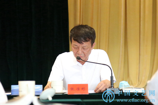 8月29日,中国文联党组理论学习中心组召开《习近平谈治国理政》第四卷专题学习研讨会。图为中国文联党组成员、书记处书记张雁彬出席会议并作交流发言。中国文艺网 李想 摄