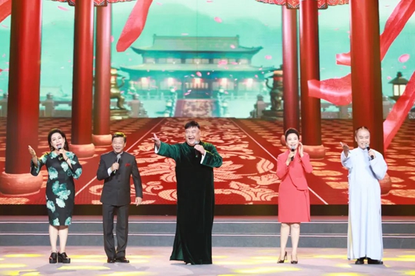 姜昆、戴志诚、郑健、金霏、陈曦表演群口相声《笑语欢歌》。