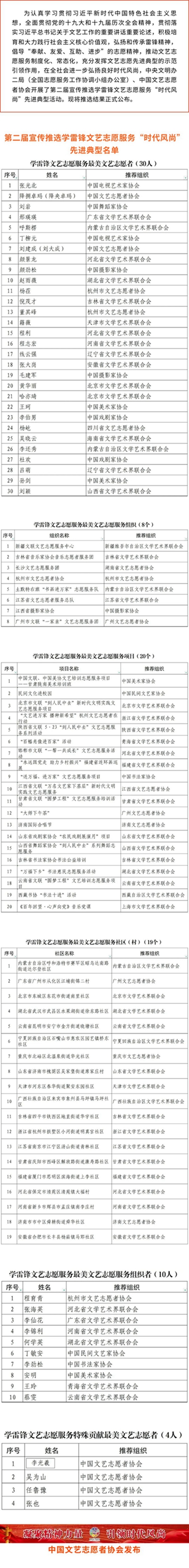 第二届宣传推选学雷锋文艺志愿服务“时代风尚”先进典型名单公布