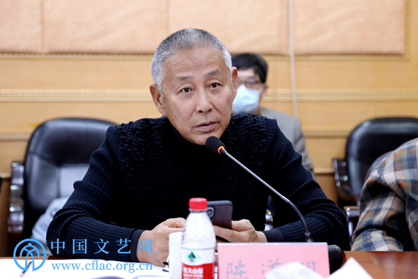 10月24日,中国影协召开学习贯彻党的二十大精神座谈会。图为中国影协主席陈道明在座谈会上发言。 中国文艺网 韩雪竹 摄