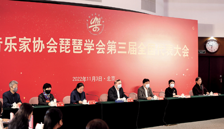 为进一步加强中国音协组织建设、完善组织体系,更好发挥音协系统专业优势和组织优势, 11月3日,中国音协琵琶学会第三届全国代表大会在北京隆重召开,来自全国琵琶界的145名代表以线上线下相结合的方式出席大会。中国文联党组成员、副主席俞峰出席大会开幕式并讲话。中国音协分党组书记、驻会副主席韩新安在闭幕式上讲话。中国音协分党组成员、副秘书长王宏主持会议。