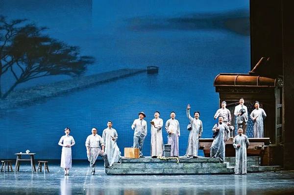 党的十八大以来,广大文艺工作者紧紧围绕中华民族伟大复兴时代主题开展文艺创作,推出一大批讴歌党、讴歌祖国、讴歌人民、讴歌英雄的精品力作。图为浙江演艺集团、浙江交响乐团、浙江音乐学院等联合演出的歌剧《红船》。人民画报社供图 刘海栋/摄