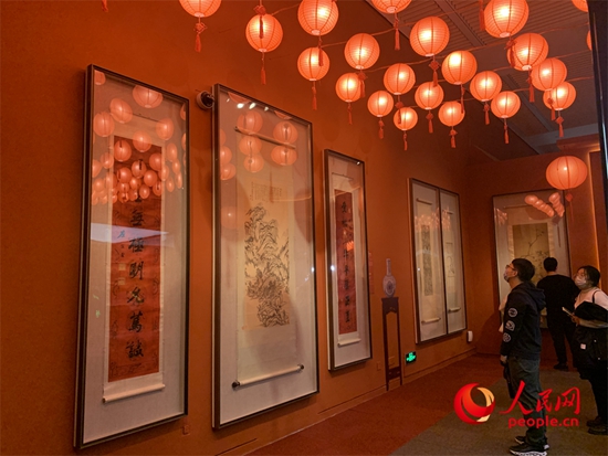 为突出节日气氛,进一步烘托年味,展陈设计中大量采用了提取自国家博物馆馆藏的传统吉祥纹饰纹样,还有福禄花窗、灯笼、鞭炮等元素来凸显新春年味。五组多媒体展示,与展陈空间和平面设计相互呼应。雪花飘落、烟花绽放,观众徜徉其中,亦构成了“年味十足”的节日活动体验。