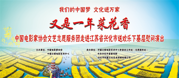 为全面贯彻落实党的二十大精神,深入贯彻落实习近平总书记关于“三农”工作的重要论述,举全党全社会之力全面推进乡村振兴,更好地践行中国文联、中国电影家协会文艺志愿服务扎根基层、深入基层的重要工作职能,4月16-17日,由中国电影家协会、中国文联电影艺术中心主办,中国文联电影艺术中心专委会工作处(志愿服务处)、中共兴化市委宣传部、兴化市创星文化艺术传媒有限公司共同承办的“又是一年菜花香”——中国电影家协会文艺志愿服务团走进江苏省兴化市送欢乐下基层慰问演出活动在兴化市成功举办。