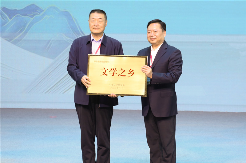 活动现场,还举办了“文学之乡”授牌仪式。徐贵祥代表中国作协向益阳市授牌,益阳市委副书记、代市长熊炜代表益阳市接牌。