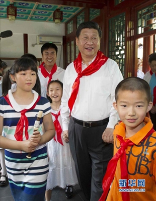 2014年5月30日上午,中共中央总书记、国家主席、中央军委主席习近平来到北京市海淀区民族小学,参加庆祝“六一”国际儿童节活动。新华社记者 谢环驰 摄