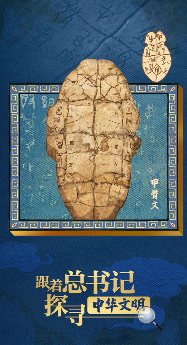 党的二十大后,习近平总书记首次地方考察,来到“向往已久”的河南安阳殷墟遗址。在殷墟博物馆,总书记仔细观摩出土文物,甲骨文就是其中之一。他指出,殷墟出土的甲骨文为我们保存3000年前的文字,把中国信史向上推进了约1000年。“中国的汉文字非常了不起。”