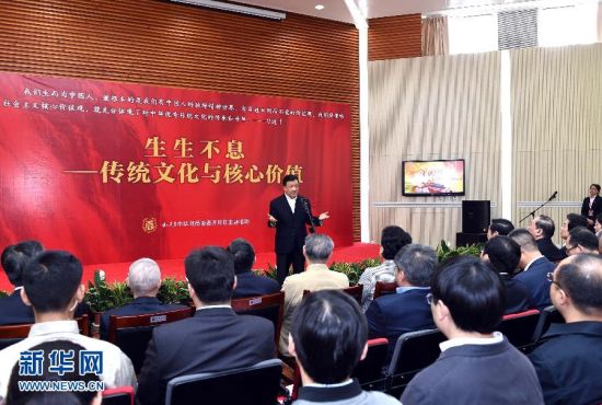 随后,刘云山来到“生生不息——传统文化与核心价值”诵读现场,同大家一起重温中华经典名句,并与参加活动的师生和文化学者亲切交谈。他说,中 华优秀传统文化是社会主义核心价值观的文化根脉,要引导人们多读文化经典,增强对中华文化的自豪感,以文化自信支撑道路自信、理论自信、制度自信。