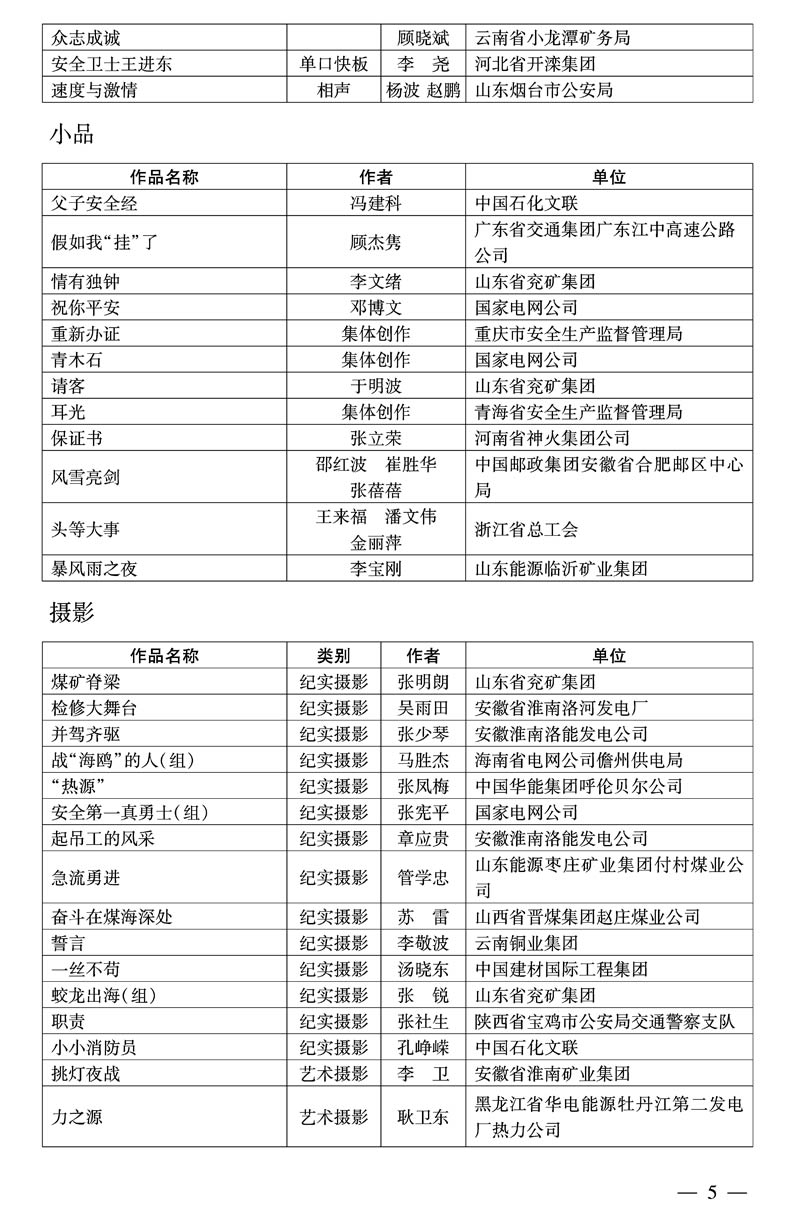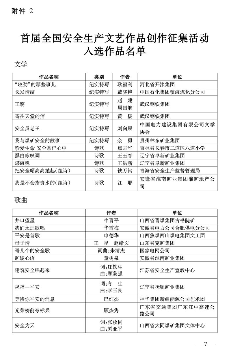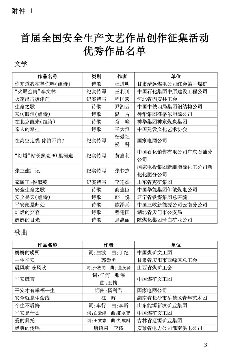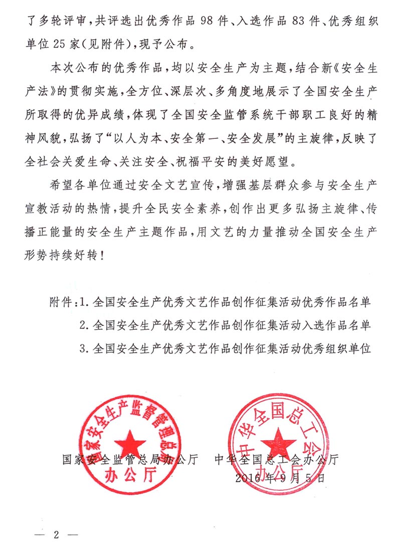 国家安全监管总局办公厅 中华全国总工会办公厅 关于公布全国安全生产优秀文艺作品的通知