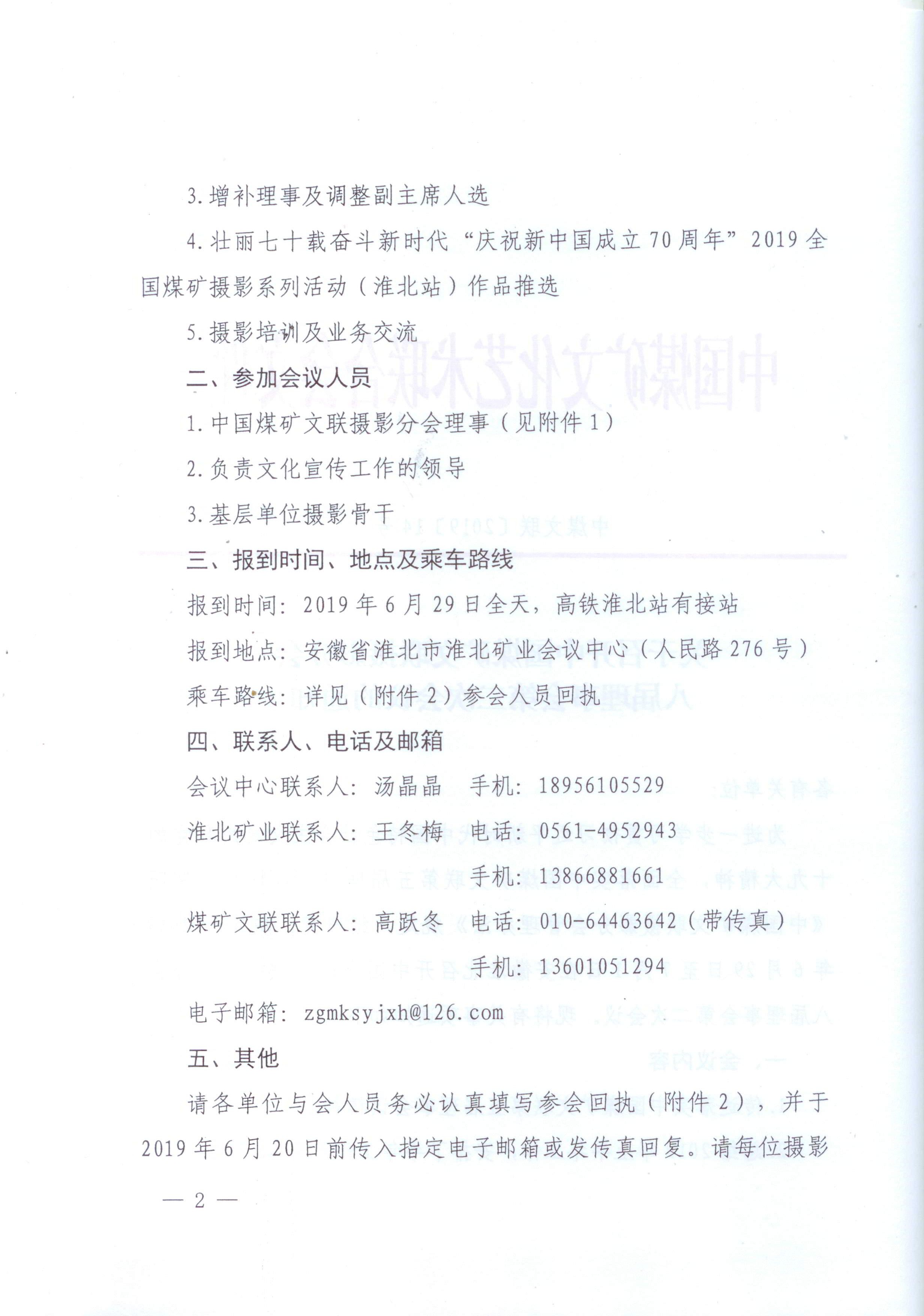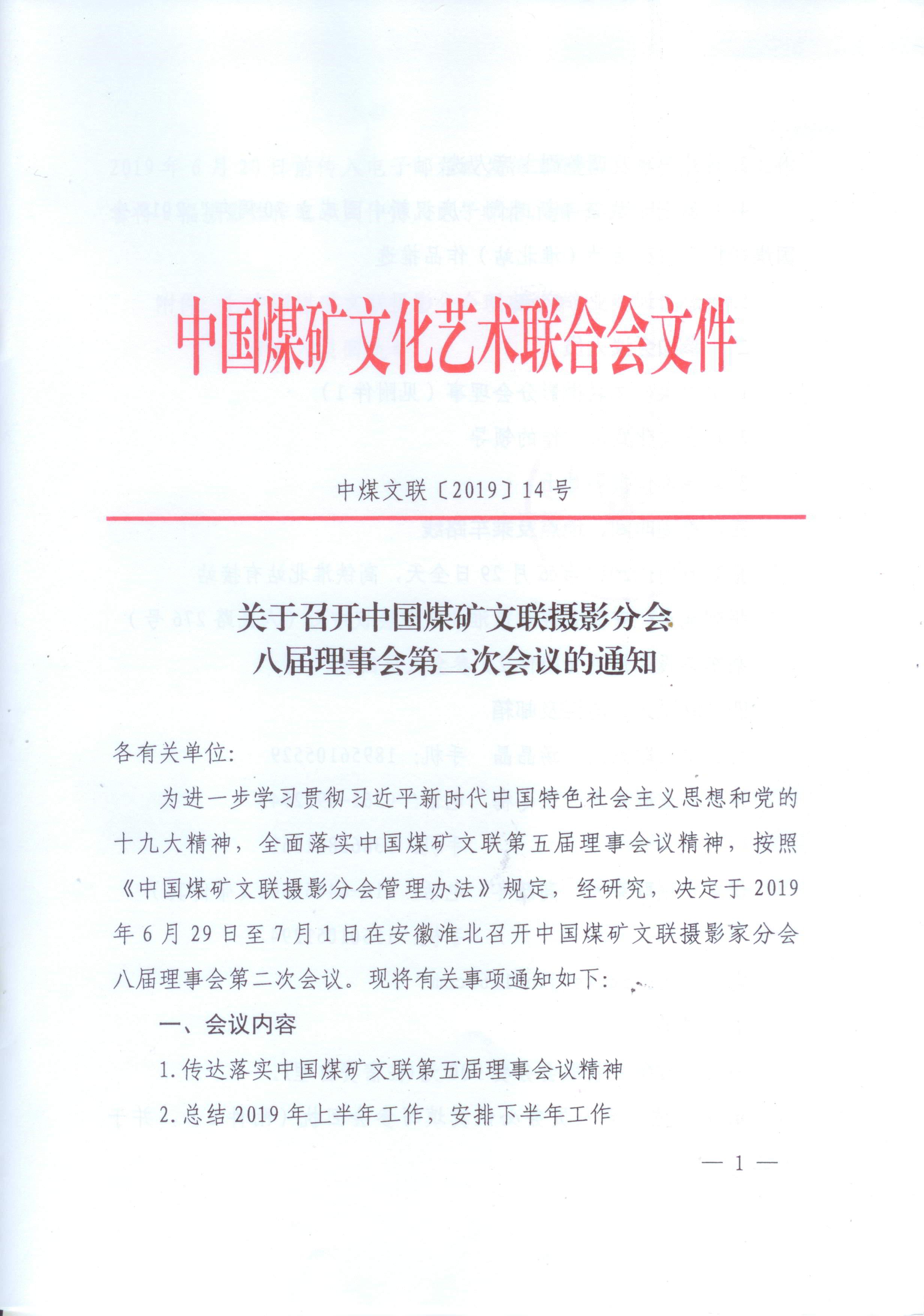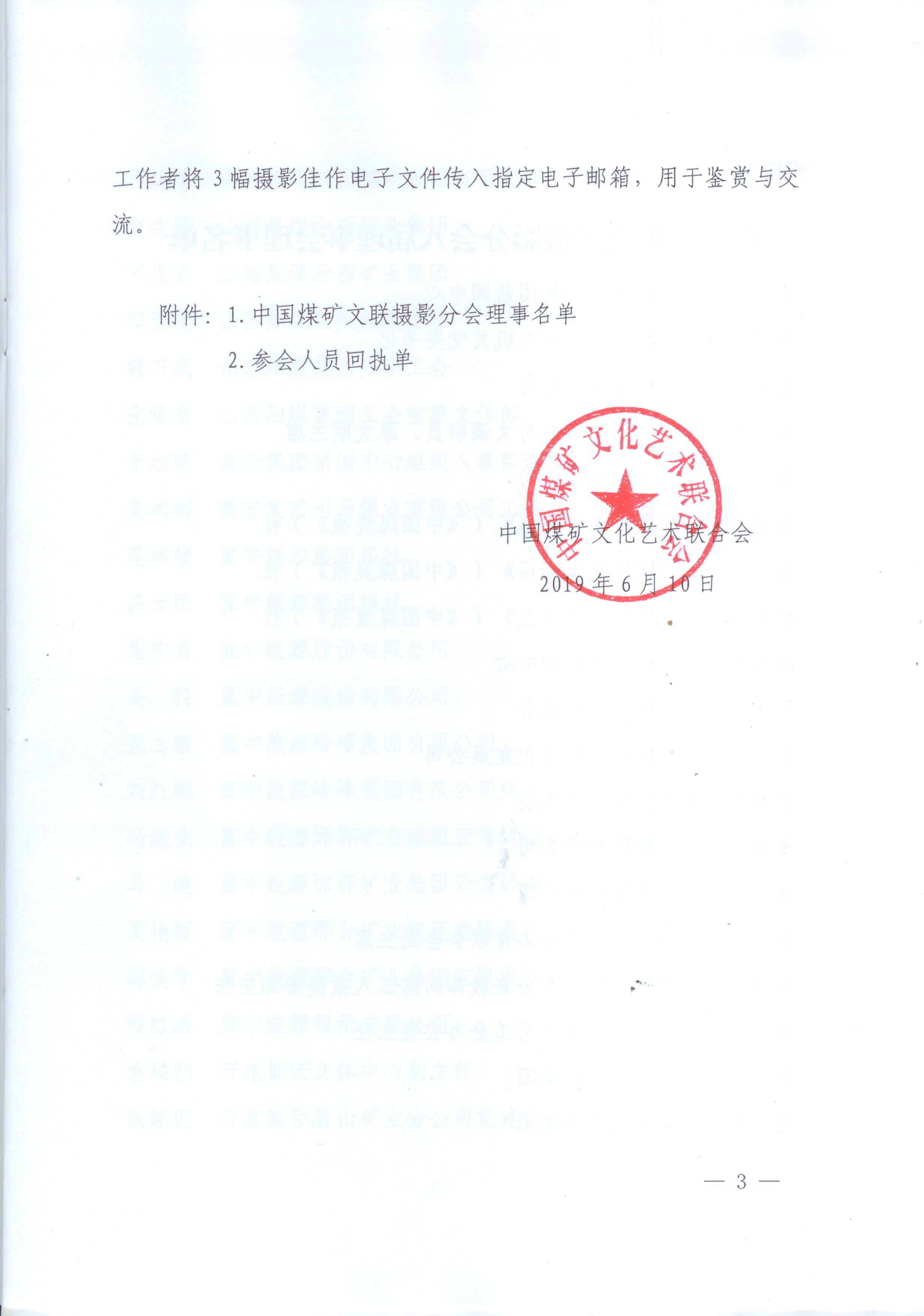 关于召开中国煤矿文联摄影家协会 八届理事会第二次会议的通知 来源:中国煤矿文联摄影分会 作者:中国煤矿文联摄影分会 时间:2019-06-17 【字体:小 大】 附件1:中国煤矿文联摄影分会八届理事会理事名单附件2:参会人员回执单 分享到: 【打印正文】